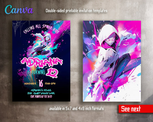 Spider Gwen Ghost Spidey customizable invitation template | Share or Print | girl | TK373