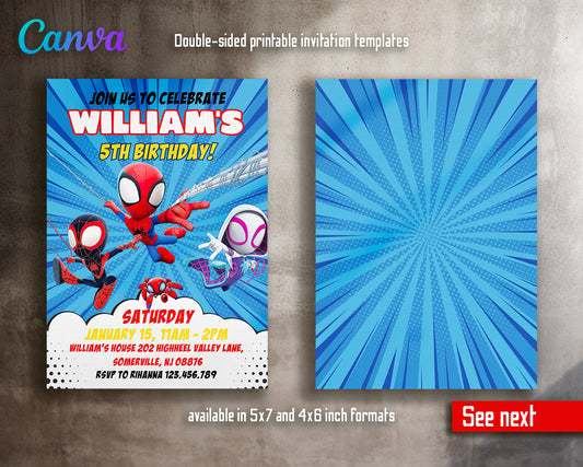Spidey Friends, Spiderman customizable invite template boy | instant download | Share or Print | MI292