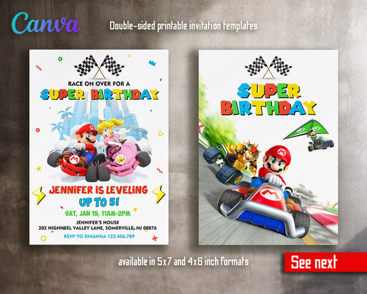 Mario Kart Gamer customizable invitation template | Share or Print | boy | XX686
