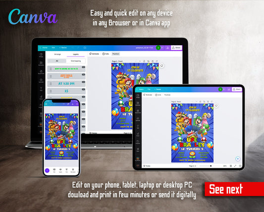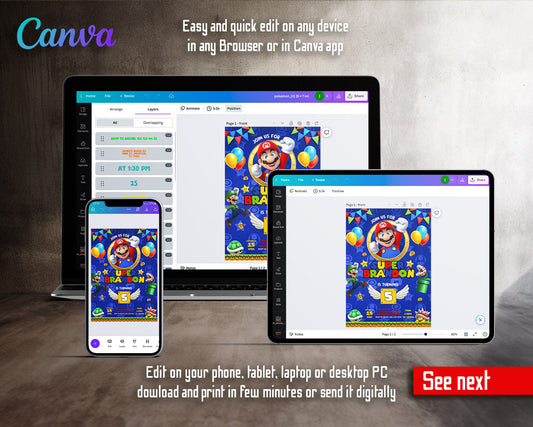 Super Mario Bros customizable invitation template | Share or Print | | LQ555
