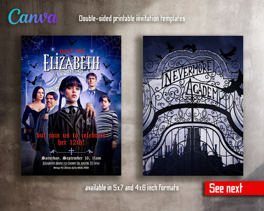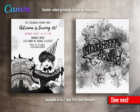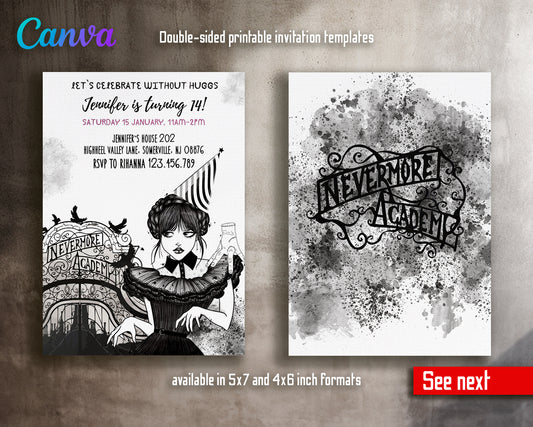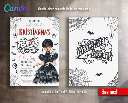 Wednesday Addams customizable invitation template | Share or Print | girl | NG204