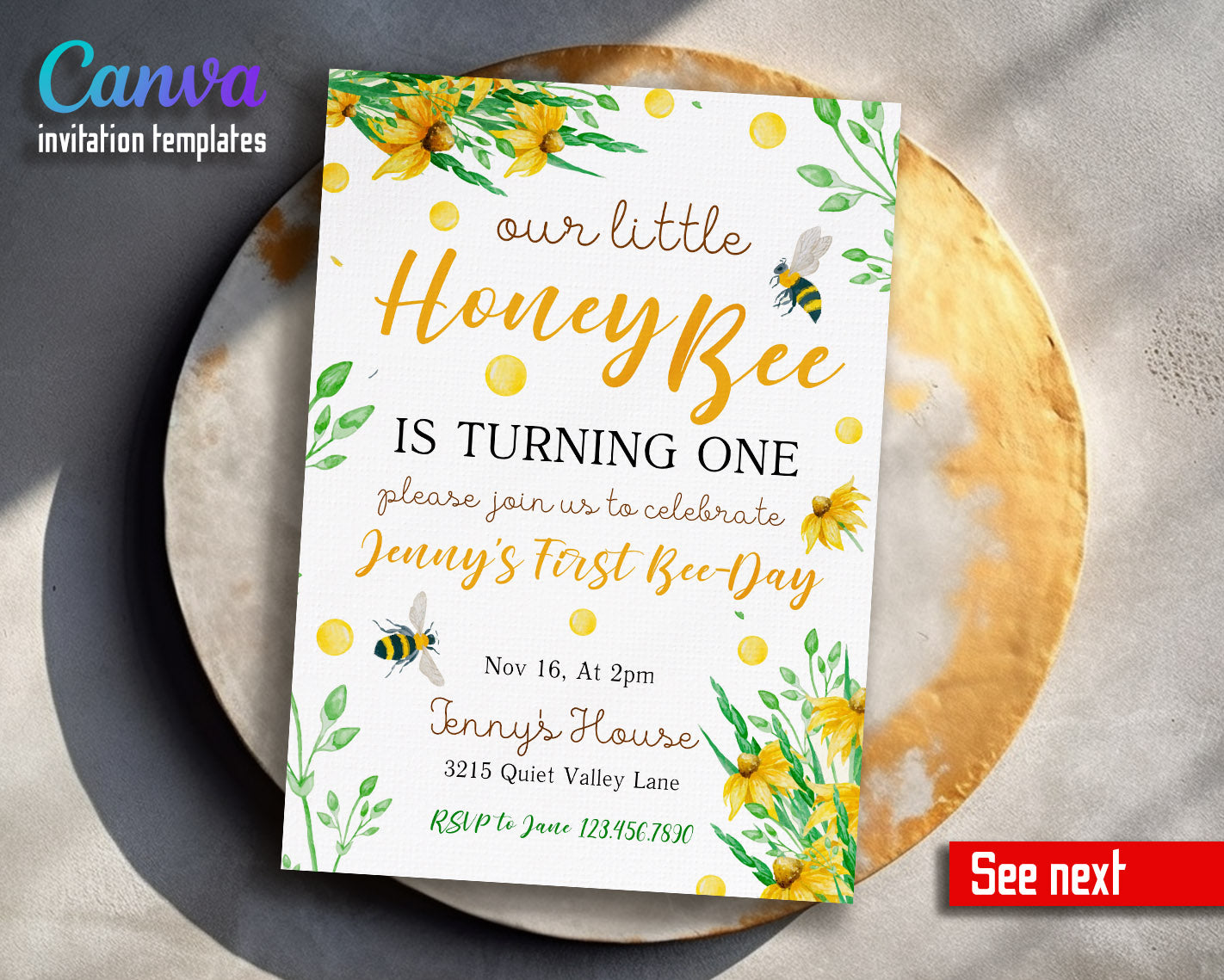 Related Tags: bee birthday, bee day invite, bee day invitation, honey bee party, girl birthday, bumble bee invite, summer b-day party, sunflower invitation, 1st 2nd 3rd bday, editable invitation, birthday invitation, printable invitation, invite template