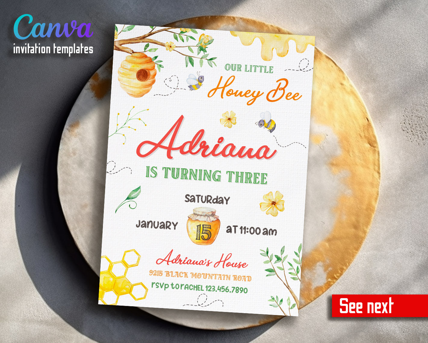 Related Tags: bee birthday, bee day invite, bee day invitation, honey bee party, girl birthday, bumble bee invite, summer b-day party, sunflower invitation, 1st 2nd 3rd bday, editable invitation, birthday invitation, printable invitation, invite template