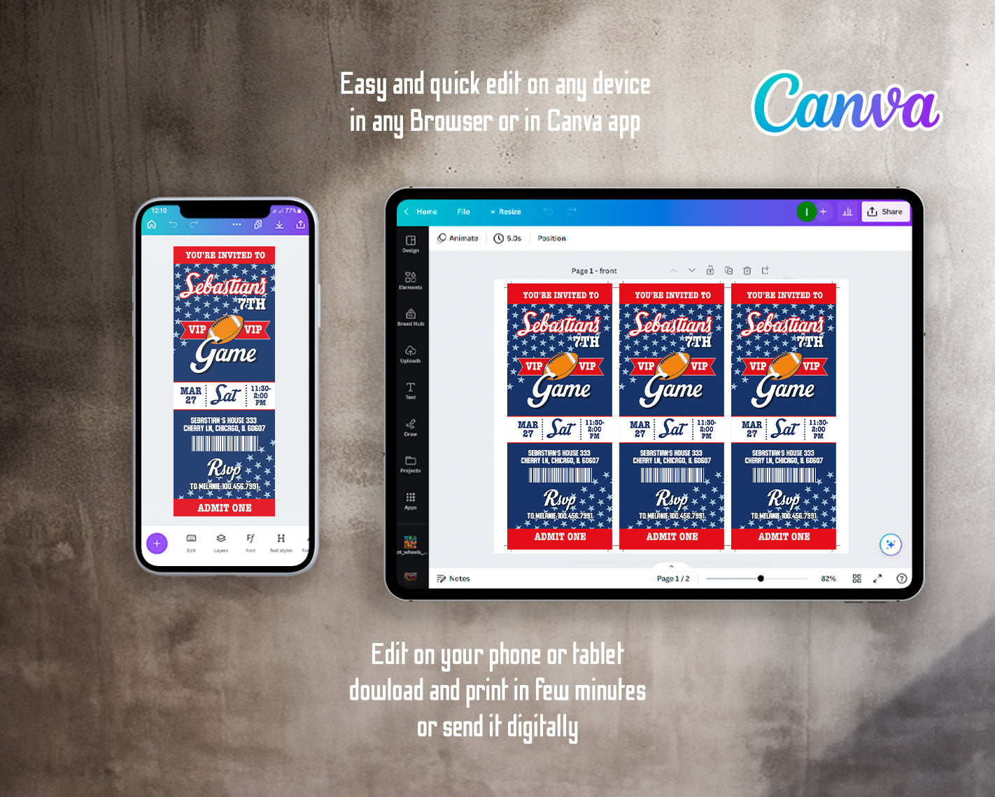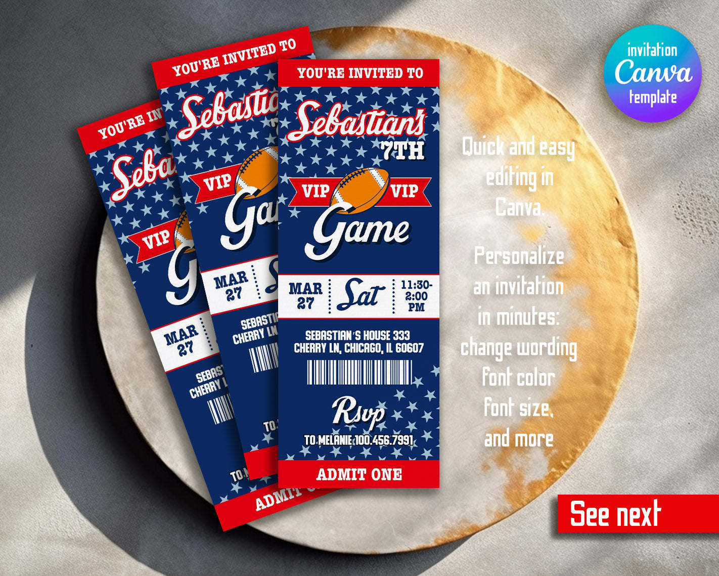 Related Tags: Football birthday, nfl invitation, Football invite, rookie year invite, super bowl party, digital invite, editable invitation, birthday invitation, printable invitation, all star party, ticket invitation, sports birthday, boy birthday