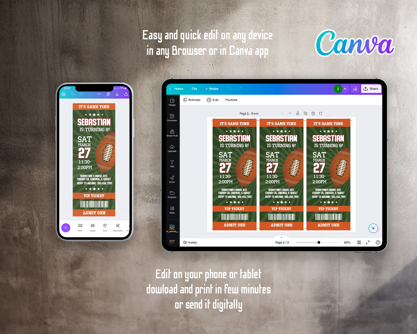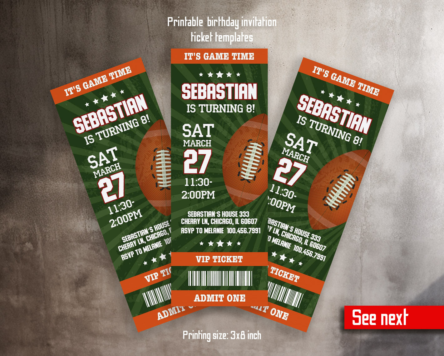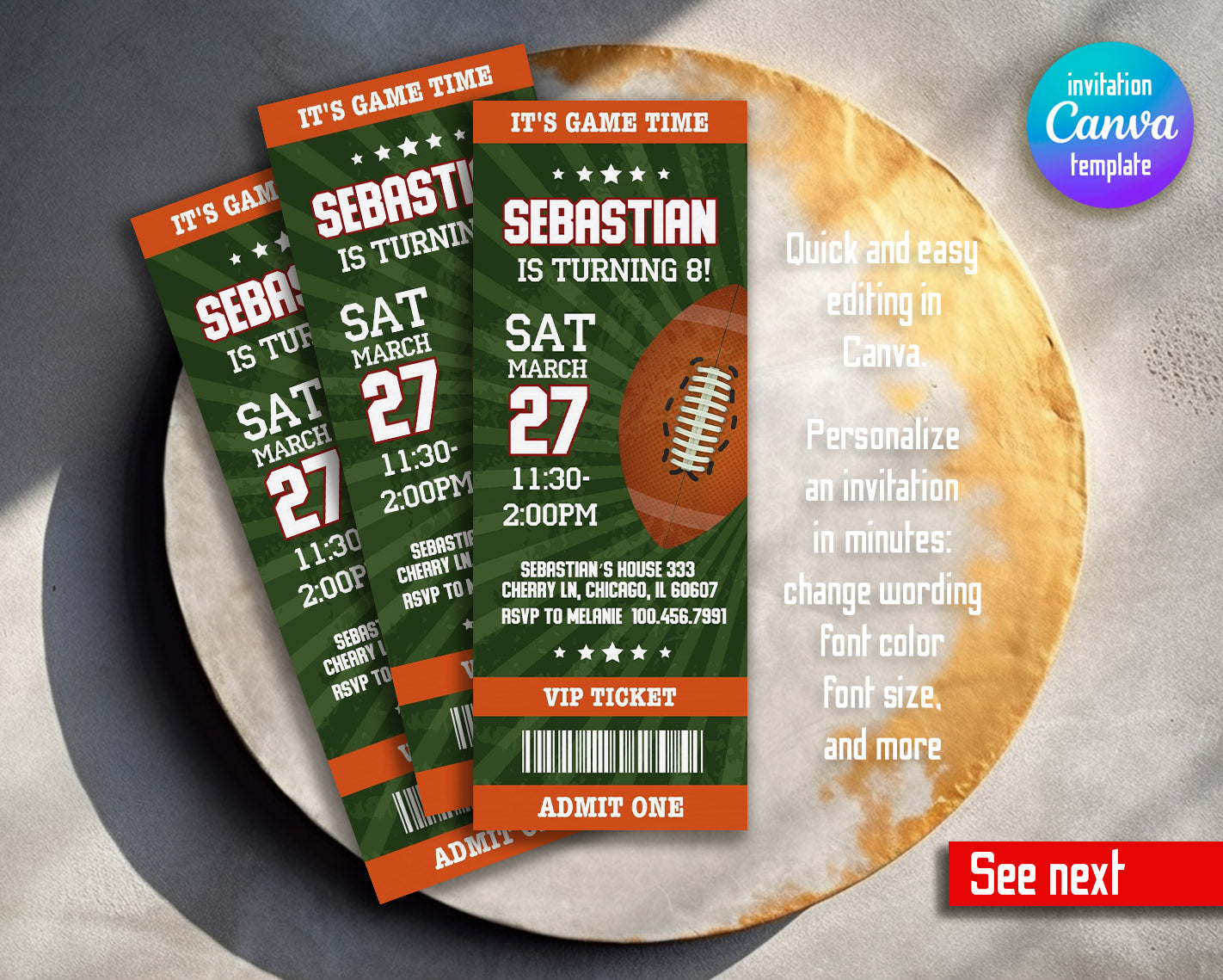 Related Tags: Football birthday, nfl invitation, Football invite, rookie year invite, super bowl party, digital invite, editable invitation, birthday invitation, printable invitation, all star party, ticket invitation, sports birthday, boy birthday