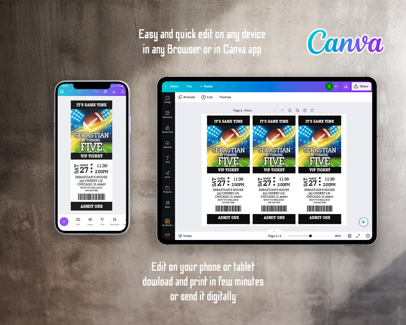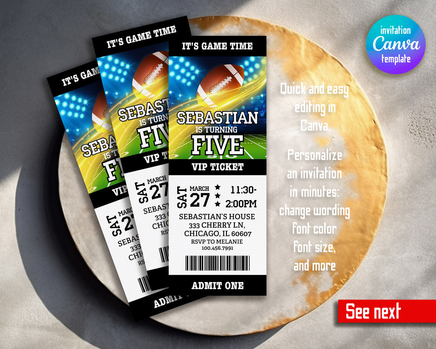 Related Tags: Football birthday, nfl invitation, Football invite, rookie year invite, super bowl party, digital invite, editable invitation, birthday invitation, printable invitation, all star party, ticket invitation, sports birthday, boy birthday