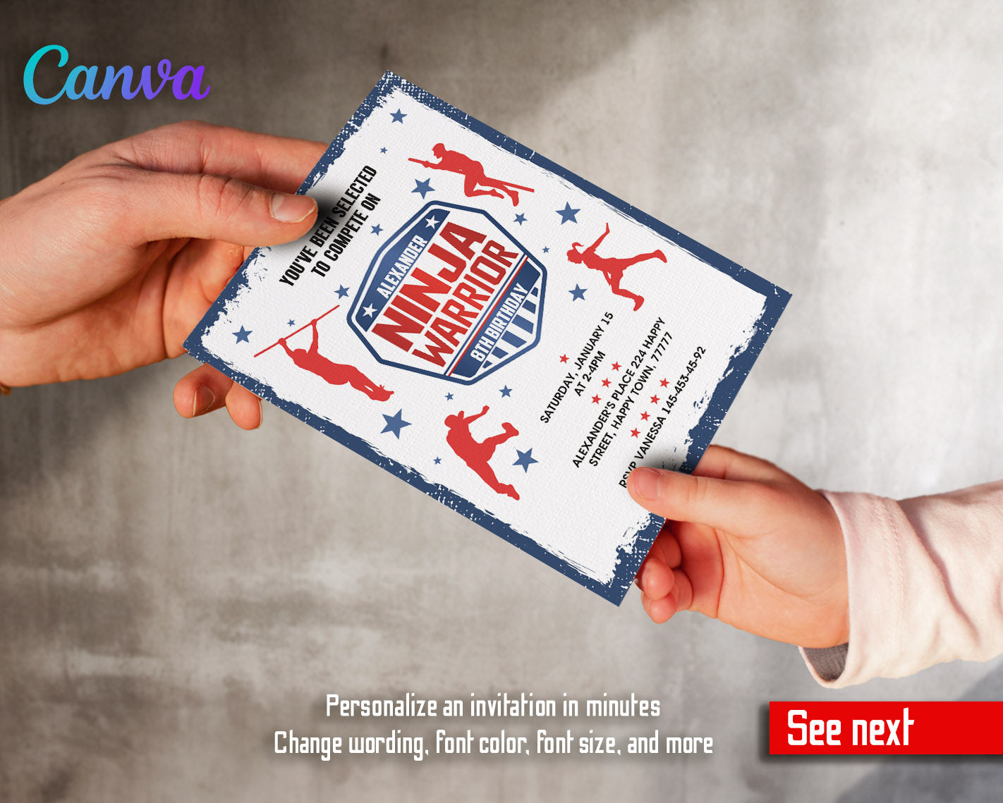 Printable Editable customizable American Ninja Warrior birthday party invitation digital template. Instant download invite.