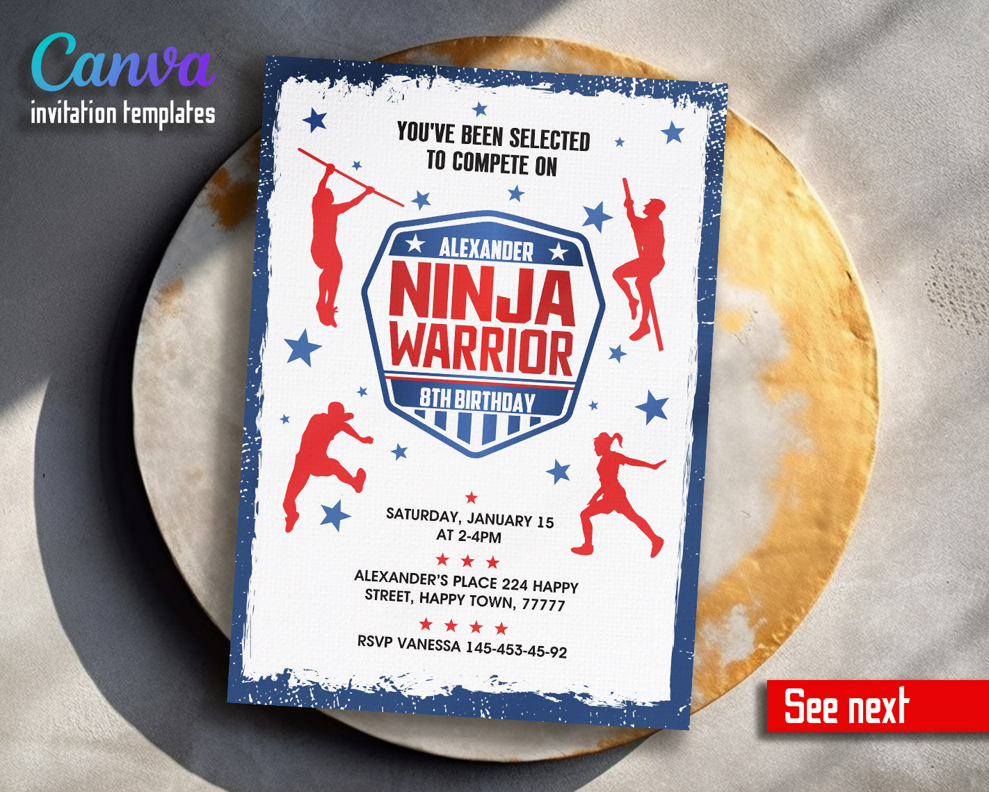 Related Tags: ninja invitation, warrior birthday, ninja warrior invite, american ninja, american warrior, digital invite, editable invitation, birthday invitation, printable invitation, climbing invitation, Australian Ninja, girl birthday,
