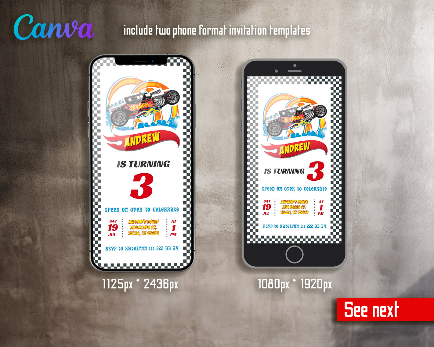Cars birthday invitation, Hot Wheels racing invite, Hot Wheels invitation, boy birthday party invitation template, printable editable invite