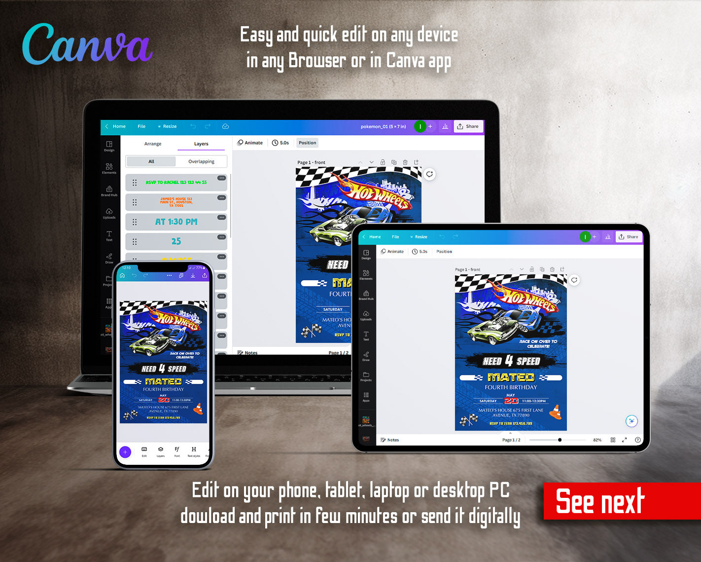 Related Tags: hot invitation, hot wheels birthday, hot wheels invite, cars invitation, racing party, need four speed bday, editable invitation, birthday invitation, printable invitation, invite template, 4th birthday party, girl birthday, boy birthday