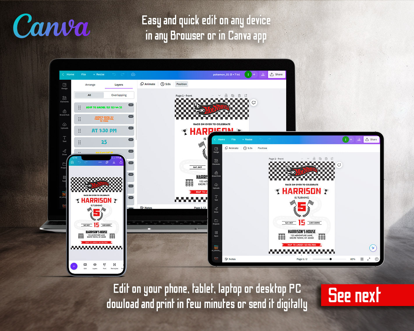 Related Tags: hot invitation, hot wheels birthday, hot wheels invite, cars invitation, racing party, digital invite, editable invitation, birthday invitation, printable invitation, invite template, evite, girl birthday, boy birthday