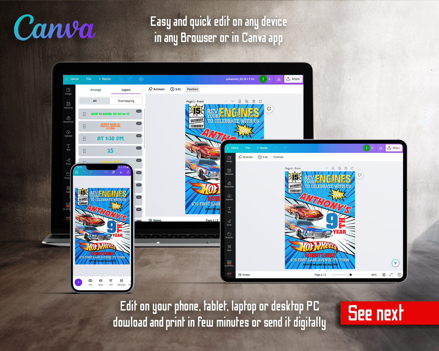 Related Tags: hot invitation, hot wheels birthday, hot wheels invite, cars invitation, racing party, digital invite, editable invitation, birthday invitation, printable invitation, invite template, evite, girl birthday, boy birthday