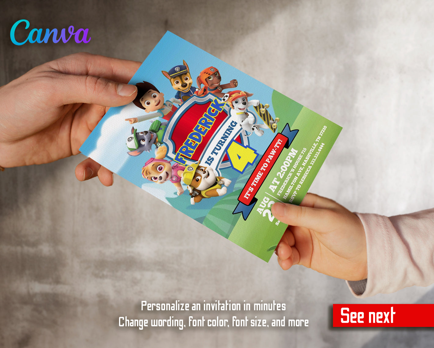Paw Patrol customizable invite template | instant download | Share or Print | KI292